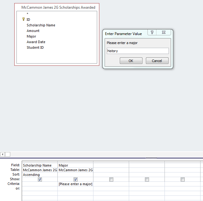 Using the student data files from Pearson Higher Education that go along with the GO! Microsoft Access book. Conditional queries: