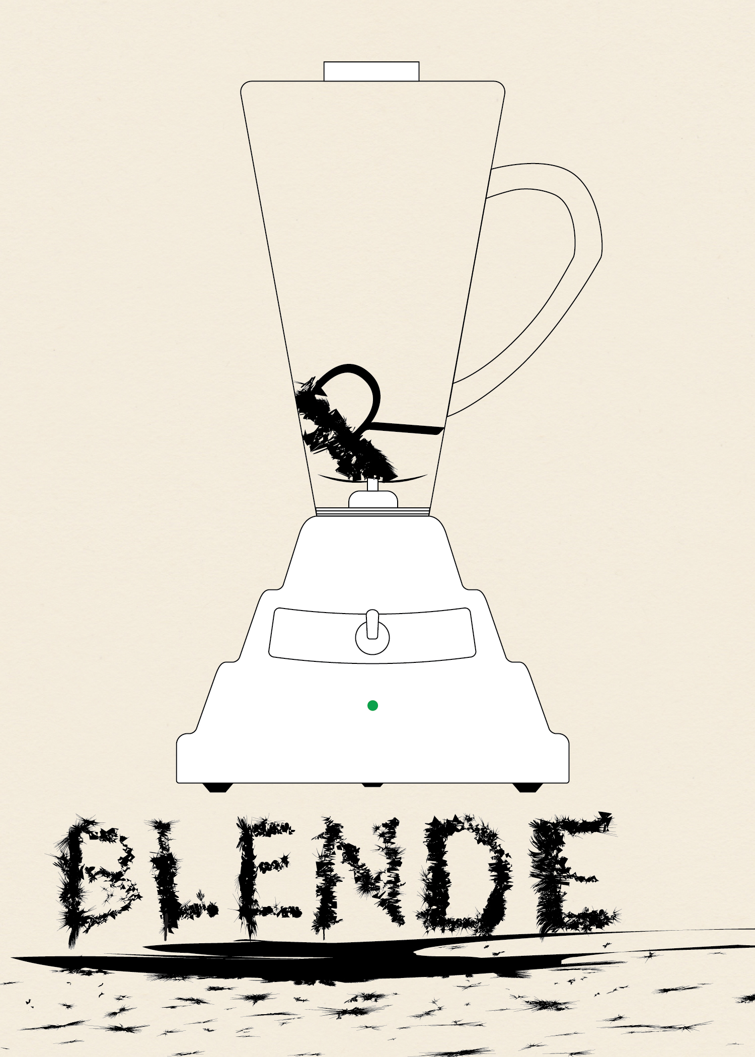 To give the body of the blender the undulating curve look I saw in photos I used Sato’s Round Any Corner script. Somewhere along the way I had the idea of making the letters look like they had been blended. I first wrote out the word “Blender,” then expanded it and worked on each letter individual. I took a rectangle and modified it using Roughen.